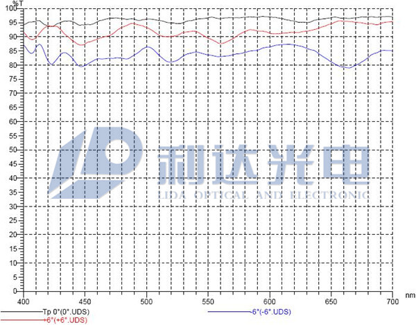 S光0°入射 420 ~680nm Ts(平均)≥95%; ± 6° Ts(平均)≥92%;