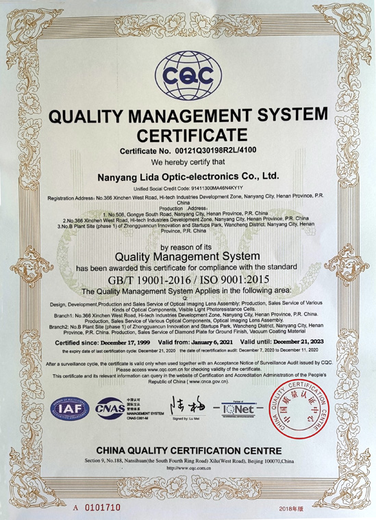 質(zhì)量管理體系認證證書(英文)